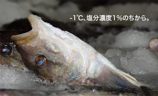 고기는 기존의 얼음의 온도 “0℃” 이상이면 효소 분해의 속도가 올라 부패가 진행됩니다. 또, “-2℃”이하가 되면 “동결하기 시작합니다”. Sea Snow는, 어체를 부드럽게 감싸 “-1℃” 전후로 안정적으로 유지합니다. 이로 인해 "효소 분해 스위치가 들어가지 않고“ 고선도가 유지됩니다